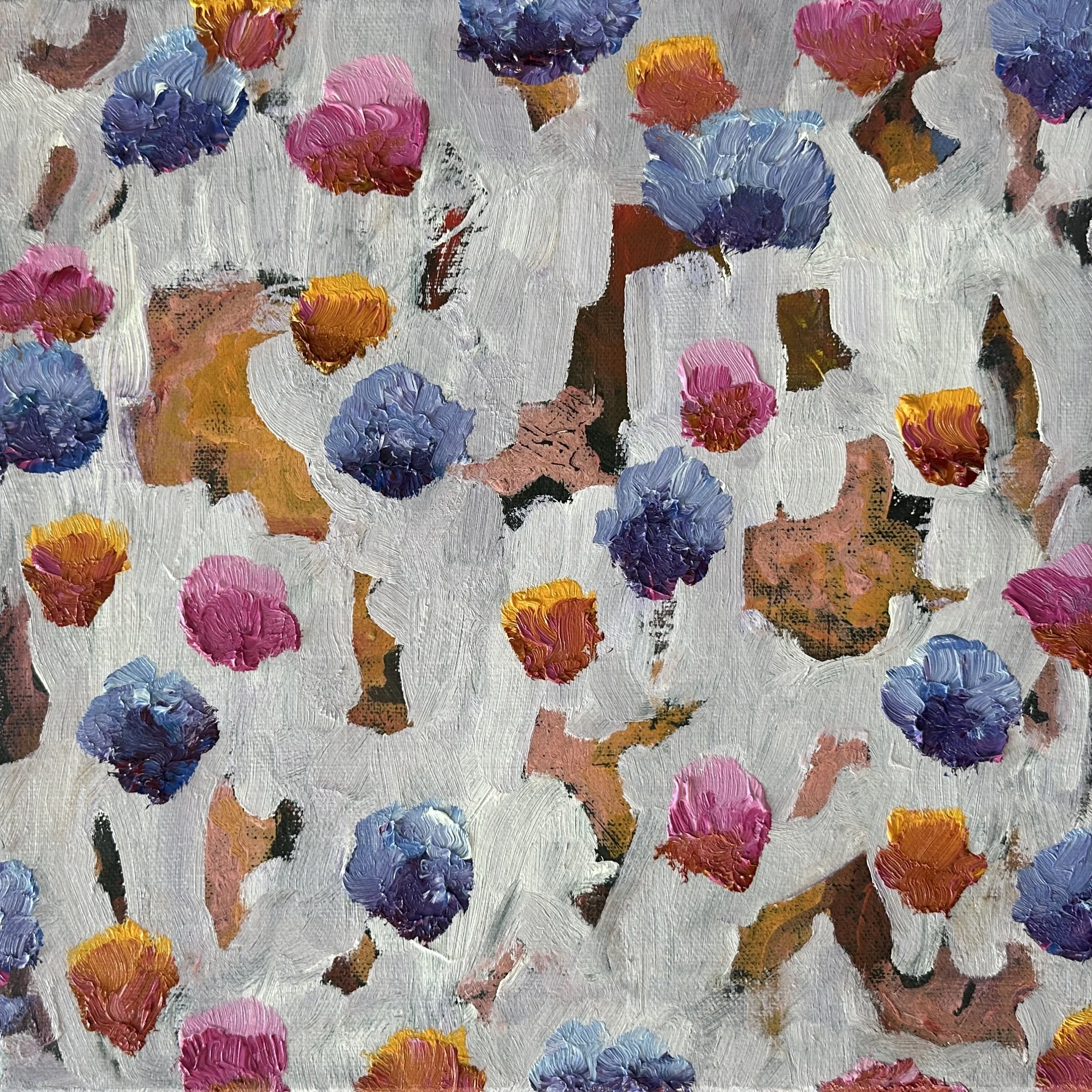 Microdot Meadow. 12 inches square. Oil on canvas.